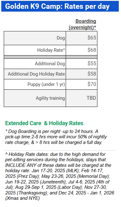 At Golden K9 Camp in Loveland, Colorado your pet will be treated like one of our family with continuous love and attention. We keep the dogs physically exercised and mentally stimulated with all day activities, although napping is always allowed for those that prefer. We closely watch all play to make sure no dogs get upset or need a break. Dogs are free to go inside and outside as they please, or chillout anywhere in our home with comfy beds and a big island couch throughout for all. Medication, treats, special diet are no problem and no extra charge. Your dog can sleep on a bed in our room or wherever they'd like - we DO NOT use crates*. We tuck them in and even give massages & doggie Reiki. Message us now to arrange your free Meet N Greet!